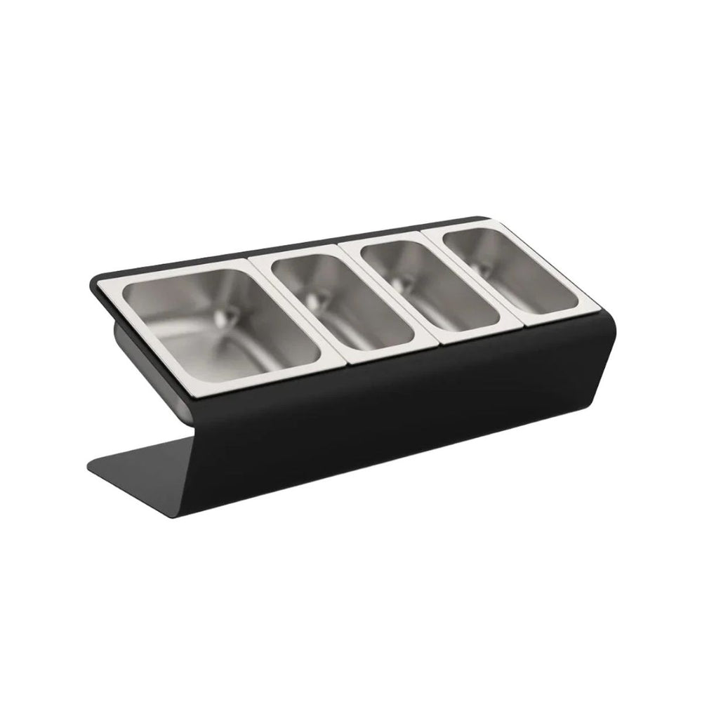 The Alfa Topping Station is a must-have accessory for any pizza enthusiast looking to streamline your pizza preparation process and keep your workspace organized. Crafted entirely in Italy, this station is made from 2 mm thick powder-coated carbon steel, ensuring durability and a sleek appearance. It comes equipped with four (4) professional steel trays—three (3) GN 1/9 size and one (1) GN 1/6 size—allowing you to keep all your toppings neatly arranged and within easy reach. The Alfa Topping Station transforms the way you prepare and season your pizzas, offering unparalleled convenience that you’ll quickly find indispensable.