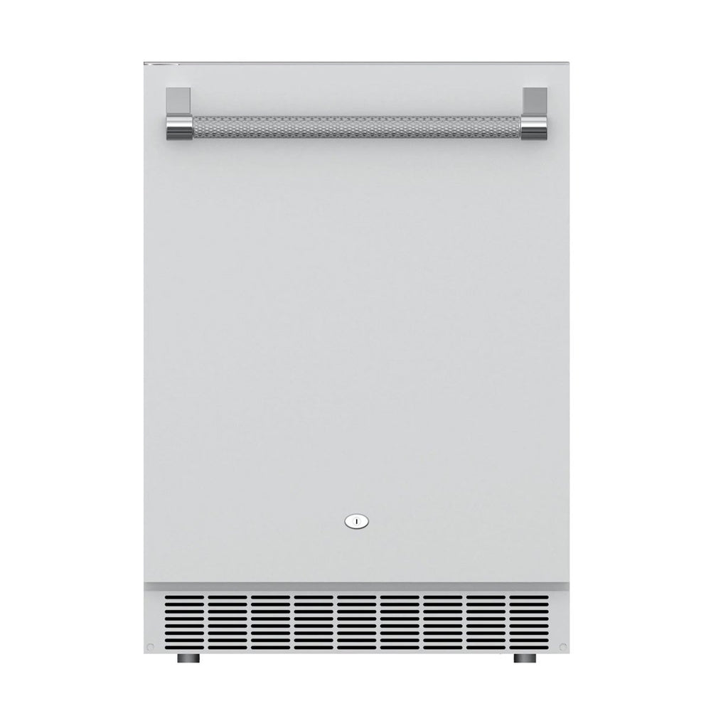 The Aspire by Hestan 24-Inch Outdoor-Rated Refrigerator provides premium cold storage for your outdoor kitchen, ensuring your ingredients and beverages stay fresh. Crafted from durable 304-grade stainless steel inside and out, this refrigerator withstands the outdoor elements, offering long-lasting protection for your stored goods. The Marquise Accented handle and commercial-grade end caps perfectly complement your Aspire grill, enhancing the overall aesthetics of your outdoor space. Featuring LED interior lighting and four (4) adjustable chrome-plated shelves, this refrigerator provides ample space for a variety of items, from cans to larger dishes, with easy visibility and accessibility.