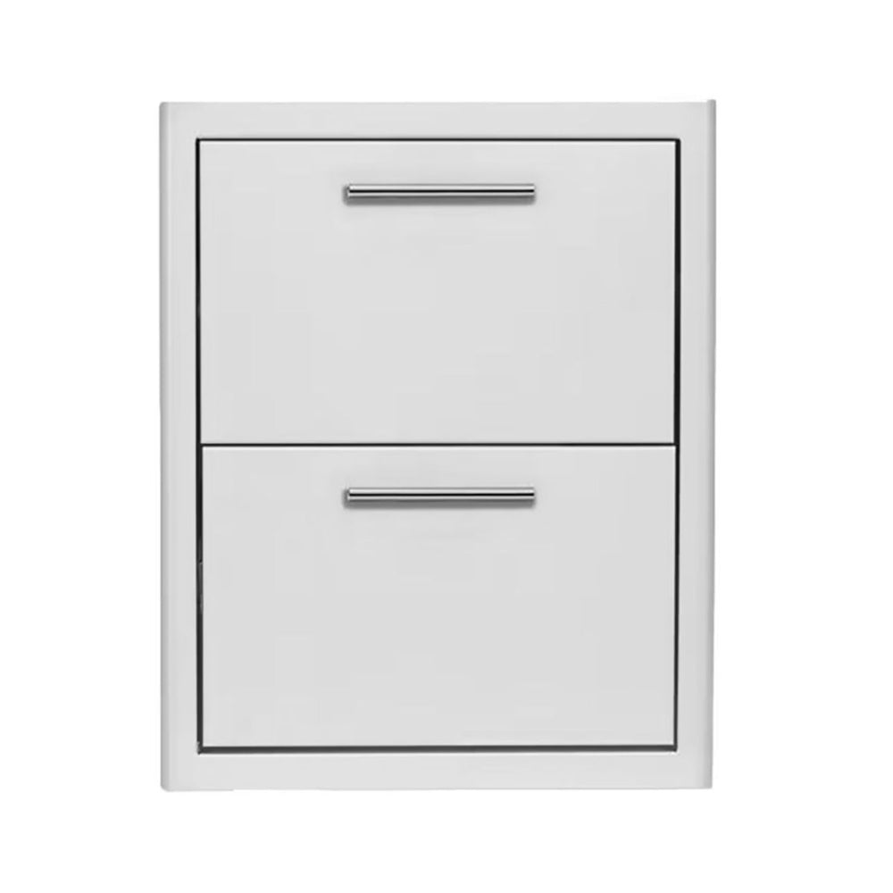 Upgrade your outdoor kitchen with the Blaze Double Access Drawer, crafted from commercial-grade 304 stainless steel for lasting durability. Its rounded bevel design and curved handles add a refined touch, complementing Blaze appliances. These LED-lit, fully-enclosed drawers offer smooth storage for BBQ tools.