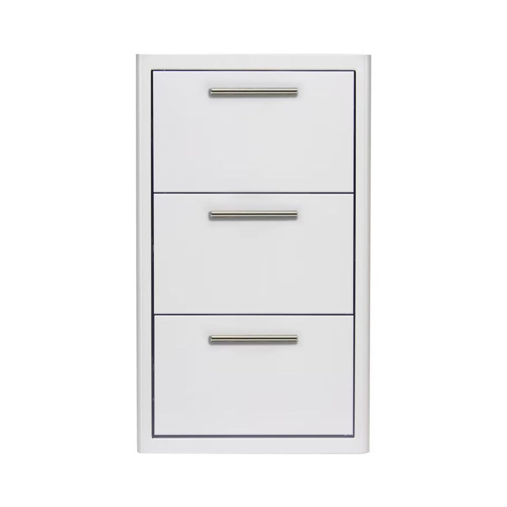 Elevate your outdoor kitchen with the Blaze Triple Access Drawer, crafted from commercial-grade 304 stainless steel for enduring durability. Its rounded bevel design and curved handles add a sleek, stylish touch, complementing Blaze appliances. These LED-lit, fully-enclosed drawers offer ample storage for BBQ tools and utensils.