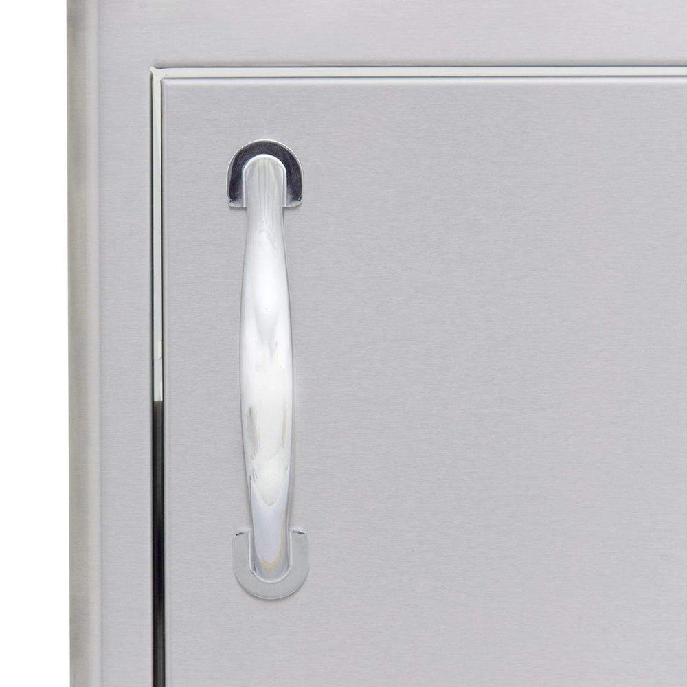 Enhance your outdoor kitchen with the Blaze Vertical Single Access Door, crafted from commercial-grade 304 stainless steel for lasting durability. Its rounded bevel design and straight handle offer a polished look, with flexible left or right hinge mounting for easy cabinet integration. This double-lined door provides reliable storage for BBQ essentials.
