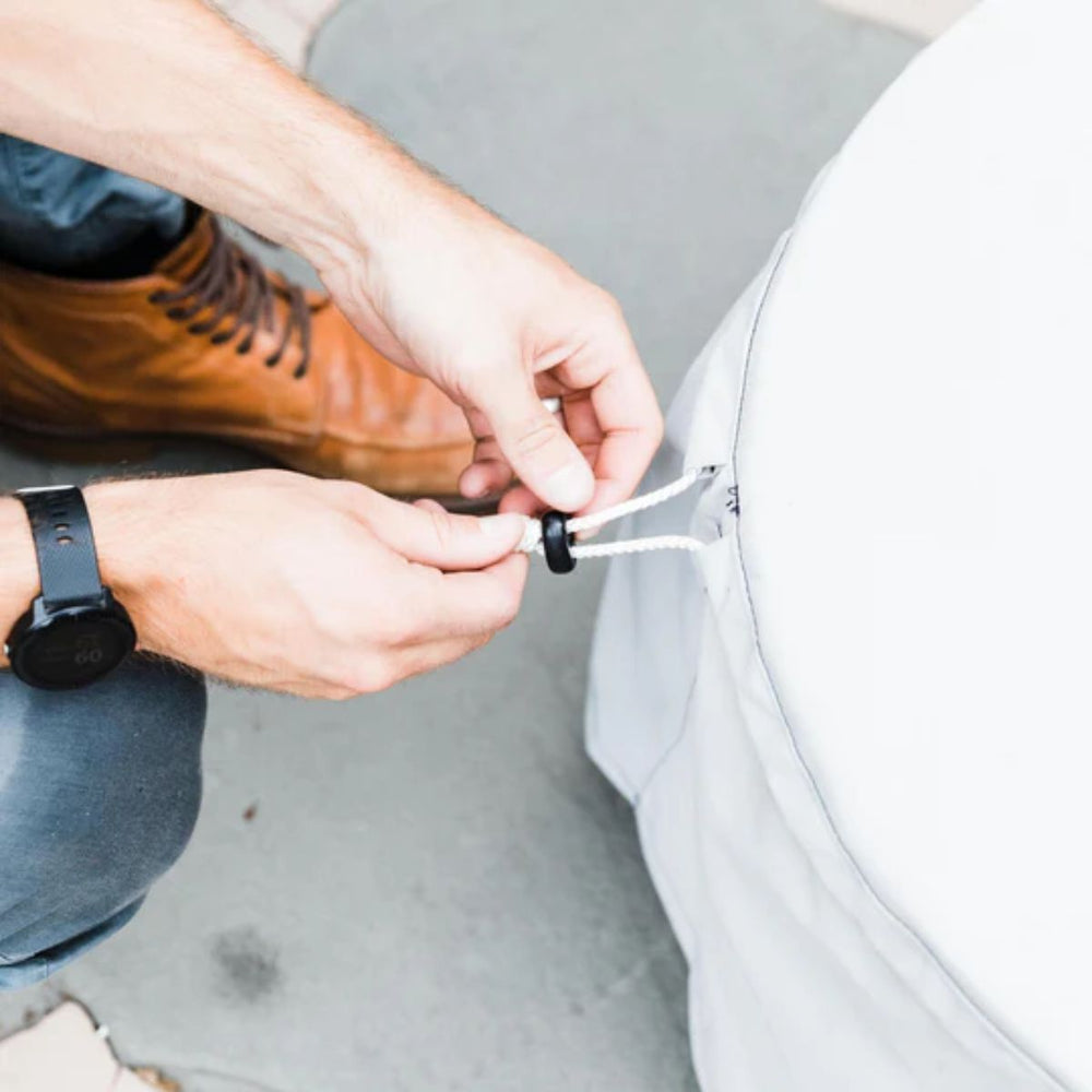 For a secure fit, the cover features an adjustable drawstring that allows you to snugly wrap it around your fire pit, preventing it from being blown away by strong winds. To further enhance protection and reduce water pooling, it's recommended to pair the cover with the X Series Lid. Please note, this cover is not heat-resistant and should only be used when your fire pit is completely cool and not in use.