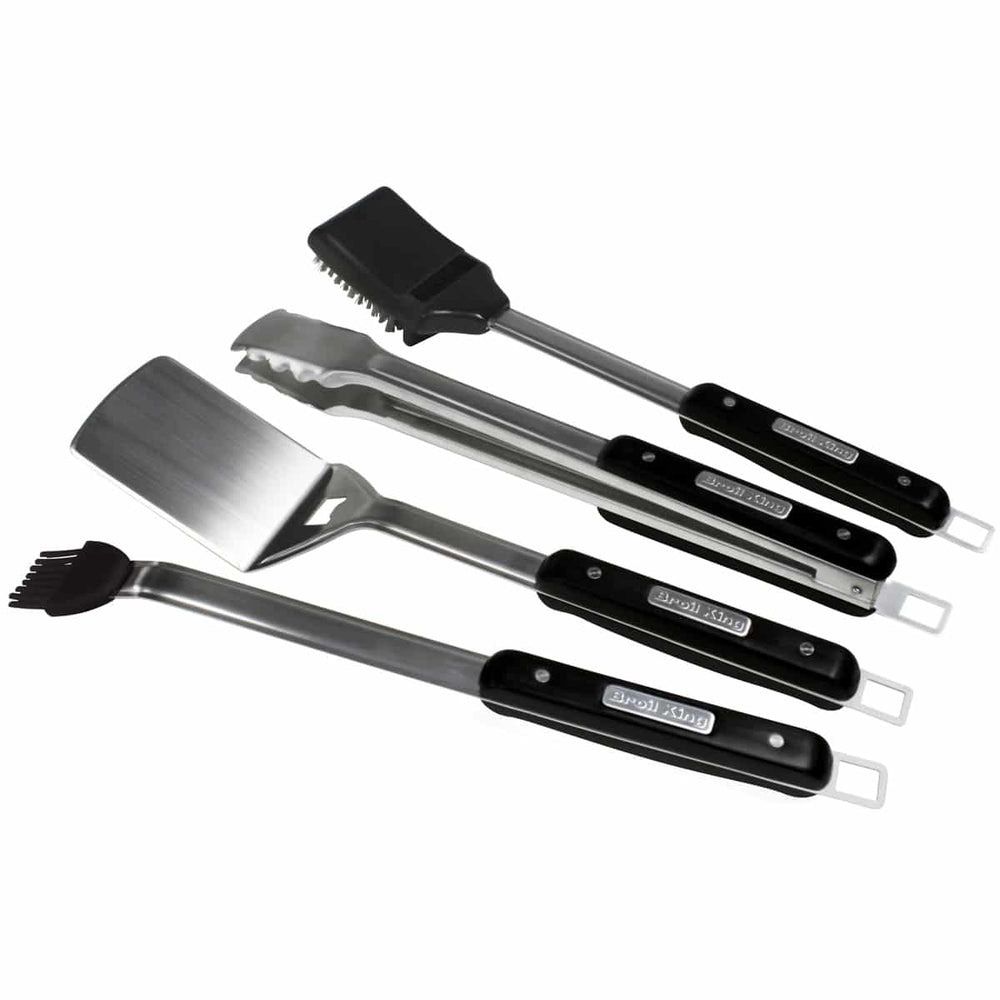 The Broil King Imperial 4-piece barbecue tool set features a durable design tough enough for even the most demanding griller. Large, high-density resin handles with sleek stainless inlays compliment the extra thick, 1.8 mm stainless steel one-piece tools, for the ideal fusion of functionality and durability. This set includes a turner, locking tong, silicone basting brush and grill brush.