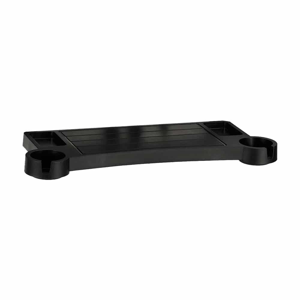 Broilmaster's Dropdown Front Shelf is a practical and stylish addition to your Broilmaster grill. This shelf installs effortlessly on the front of your grill, providing convenient access to your cooking essentials. Crafted from a durable black composite material, it not only adds functionality but also complements the sleek look of your grill. The integrated cup holders offer additional convenience, ensuring your beverages or sauces are always within reach while you cook.