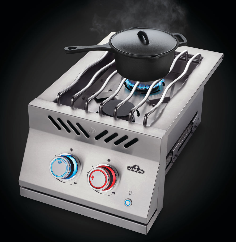Napoleon Built-in 700 Series 12-Inch Inline Dual Range Top Burner with Stainless Steel Cover unites sleek design with culinary supremacy. Its premium features, from instant ignition to glowing SafetyGlow™ knobs, make every cooking session a thrilling, seamless triumph. Shop now for a burner forged for bold flavors and timeless outdoor elegance!