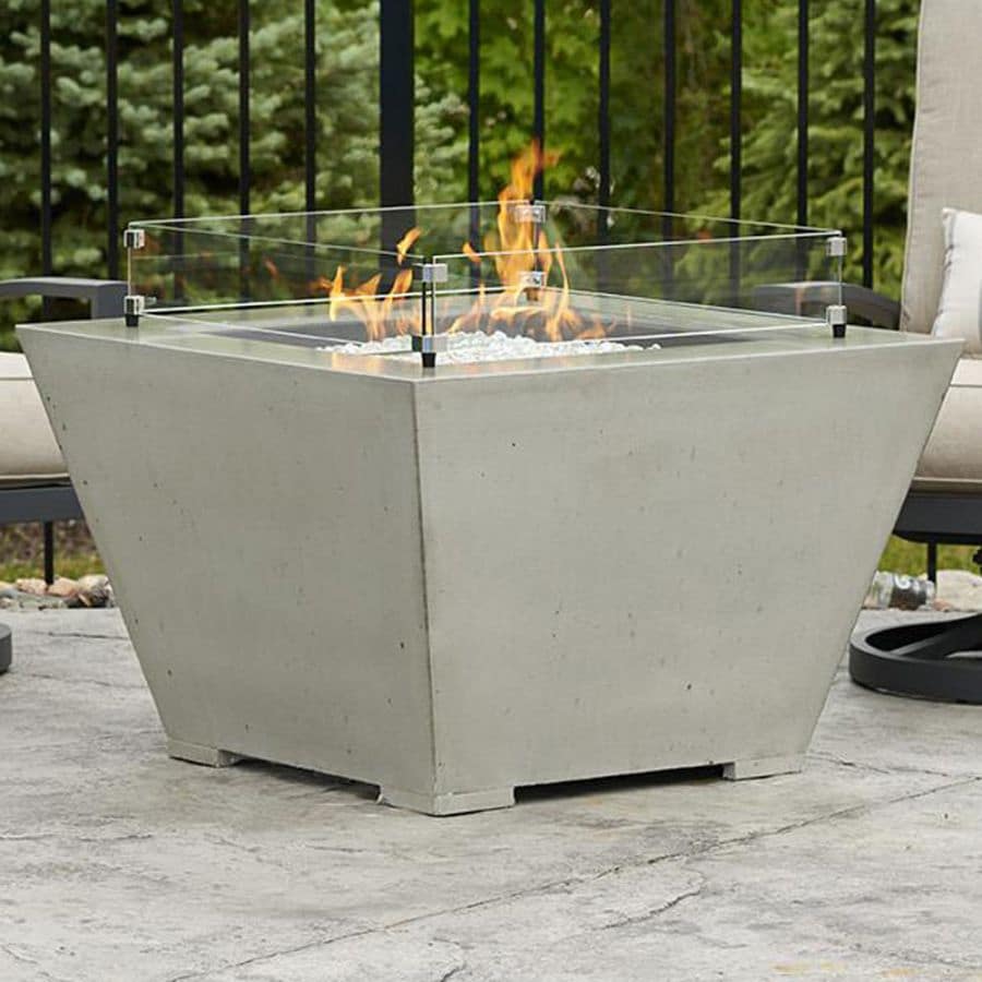 Don't let chilly days get in the way of your next social event, allow this lovely Cove Square Gas Fire Pit Bowl to light up the evenings with a cozy, contemporary flair. The perfect addition to any outdoor space, the natural gray Supercast concrete compliments the dazzling 24-Inch square stainless steel Crystal Fire burner in black finish. Featuring electronic piezo controls, this fire pit lights with the push of a button and lets you easily adjust the flame height. The burner is UL listed for safety and rated for up to 90,000 BTUs. An access door provides discreet storage for a standard 20-pound propane tank. The organic, natural appearance of the concrete is unique to each fire pit, color intensity will vary. Whether hosting parties or just relaxing on the patio, the Cove Square Fire Pit Bowl will provide many warm, glowing fires for you to enjoy for years to come.
