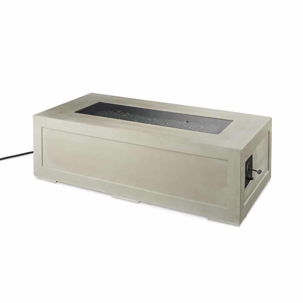 Don't let chilly days get in the way of your next social event, allow this lovely Cove Linear Gas Fire Pit Table to light up the evenings with a cozy, contemporary flair. The perfect addition to any outdoor space, the natural gray Supercast concrete compliments the dazzling linear stainless steel Crystal Fire burner. Included are a gray glass burner cover and diamond glass fire gems for a sparkling flame effect. Featuring electronic piezo controls, this fire pit lights with the push of a button and lets you easily adjust the flame height. The burner is UL listed for safety and rated for up to 80,000 BTUs. The organic, natural appearance of the concrete is unique to each fire pit, color intensity will vary. Whether hosting parties or just relaxing on the patio, the Artisan Fire Pit Table will provide many warm, glowing fires for you to enjoy for years to come.
