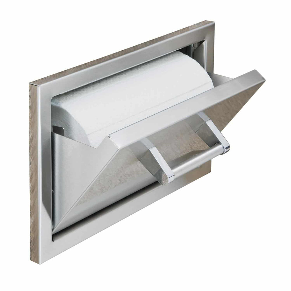 Complete your Delta Heat outdoor kitchen with this paper towel holder that offers the sleek, high-polished premium quality the Delta Heat brand is known for. This 15-inch paper towel drawer is constructed of 304 stainless steel with a one-piece 18-gauge frame. The drawer has swing down paper towel compartment that holds a standard size paper towel roll. Delta Heat products are designed and manufactured in the USA with pride.