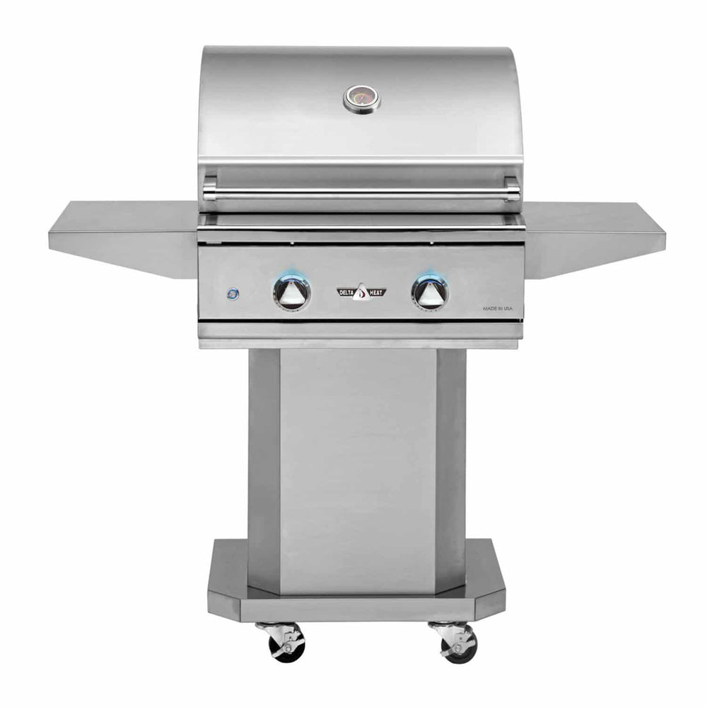 The Delta Heat Premier 2-Burner Gas Grill brings exceptional quality and performance to any outdoor kitchen. Delta Heat gas grills feature 304 stainless steel with seamless welded construction, sleek high-polished accents, and double-lined hood for maximum strength, durability, and appeal to your entertaining experience. This 26-inch grill has two (2) 18-gauge stainless steel U-Burners, ceramic briquette flame tamers that distributes the radiant heat more evenly across the cooking surface, and stainless steel cooking grates.