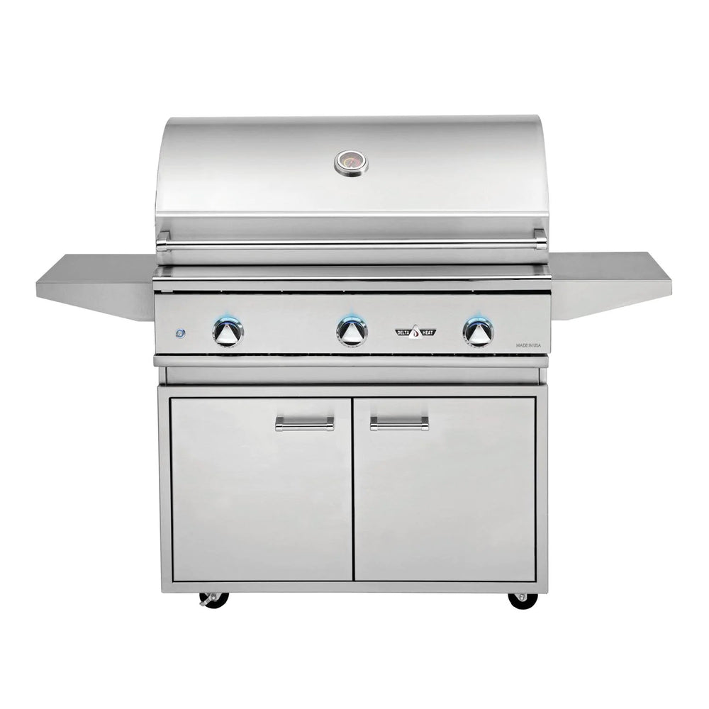 Delta Heat’s Premier 38-Inch 3-Burner Gas Grill brings exceptional quality and performance to any outdoor kitchen. Delta Heat gas grills feature 304 stainless steel with seamless welded construction, sleek high-polished accents, and double-lined hood for maximum strength, durability, and appeal to your entertaining experience. This 38-inch grill has 18-gauge stainless steel U-Burners and ceramic briquette flame tamers that distributes the radiant heat more evenly across the cooking surface and stainless steel cooking grates.