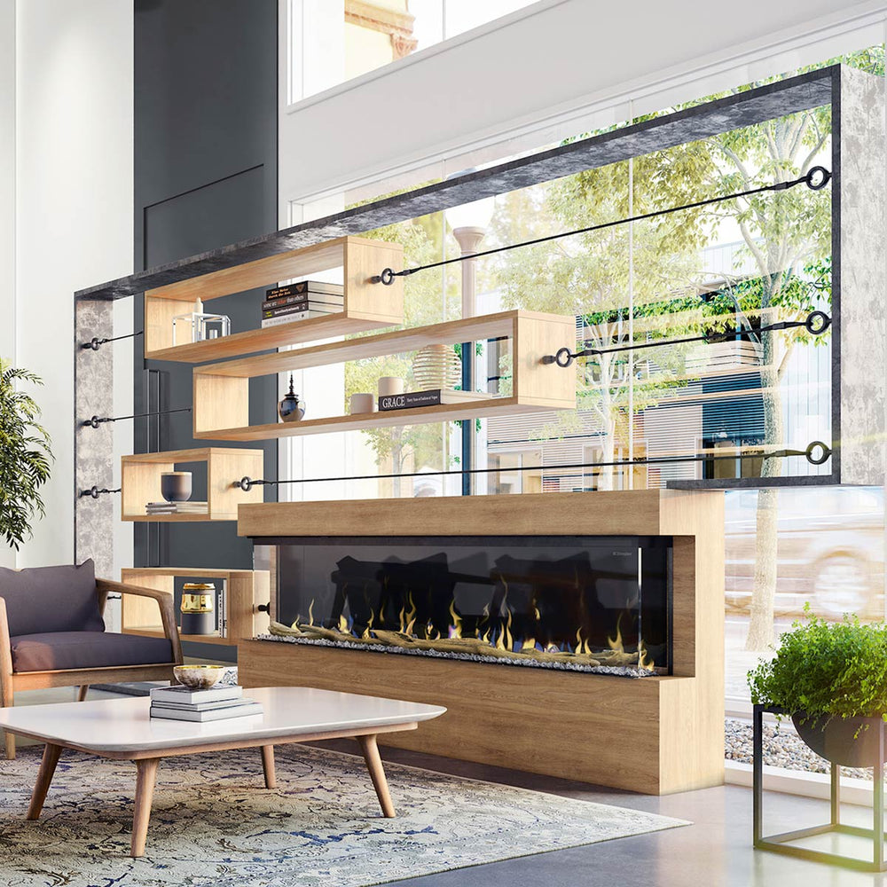 The IgniteXL Bold offers three (3) flame colors, seven (7) media bed colors, a multi-color top light and five (5) different flame speed levels. Select from a range of preset colors or scroll through Prism mode and freeze it at your favorite look. The stylish multi-media bed includes natural-looking driftwood with small and large acrylic crystals. Control your IgniteXL Bold Electric Fireplace with the included multi-function remote control, Dimplex's Flame Connect App or the touch control panel, which is hidden when not in use.