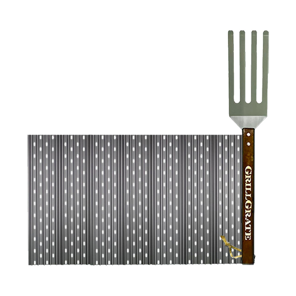 Transform your backyard grill into a Grate Grill with this 7-Panel Replacement Grate Set from GrillGrate. The interlocking panels amplify heat, even out hot/cold spots and reduce flare-ups. GrillGrates can be used as a drop-in replacement to your existing grates or sat on top to simply cover them. Use one set to cover part of your grill, or connect multiple panels together to cover more surface area.