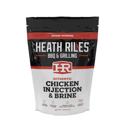 The Heath Riles BBQ Chicken Injection & Brine is a versatile new product that can be used as an injection for tender, juicy chicken or for use as a brine to get delicious results as well! This comes from the years of competition wins and cooking with a a proven combination of salt, sugar and spices that will take your competition chicken or weekly dish to a whole new level.