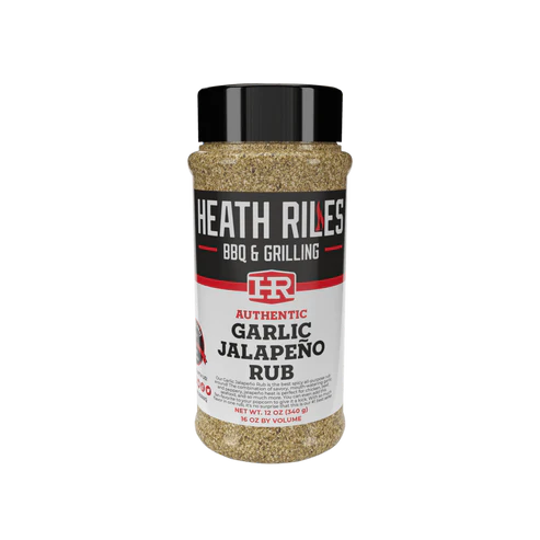 Heath Riles Garlic Jalapeño Rub adds a spicy garlic kick and a little bit of heat to anything you sprinkle it on! Excellent as a base layer to improve the flavor profiles on BBQ or try it on fries, burgers, pork, fish, chicken, seafood, sandwiches, and vegetables for that extra kick! Part of the layered rub process for Heath's winning competition ribs.