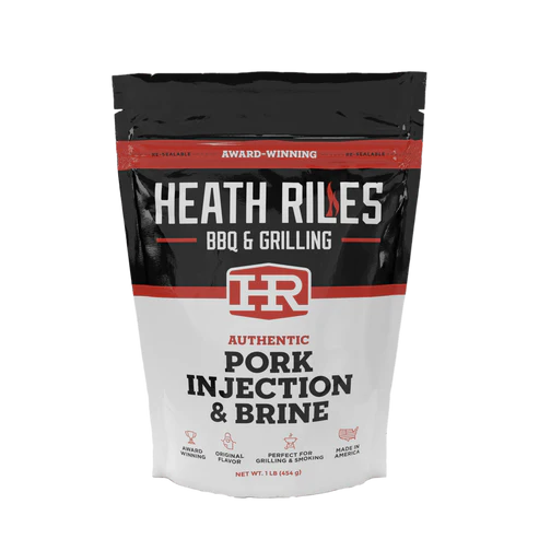 Made with a blend of brown sugar, salt, pepper, and garlic, the award-winning Heath Riles Pork Injection is a great way to keep your pork tender and flavorful. You can inject the pre-made mix or brine with it. No matter how you use it, your pork will be full of flavor to the very last bite! I developed this injection years ago when I was competing in the MBN BBQ circuit, and have won countless times with it in my arsenal. Combine it with water or apple juice and go win some competition trophies!