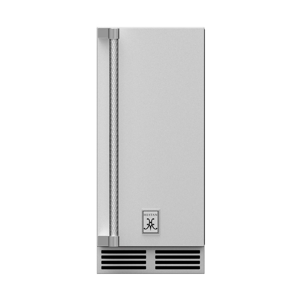Hestan's 15-Inch Outdoor-Rated Stainless Steel Ice Maker provides a premium outdoor kitchen component to complete your perfect outdoor kitchen. This UL-Listed and NSF-Certified ice maker can hold up to 22 pounds of ice and is constructed from premium stainless steel for a blend of style and durability that is sure to withstand the elements. With 55 pounds of fresh ice production every 24 hours, heavy duty insulation and a heavy-gauge stainless steel built-in storage bin, this ice maker offers a level of convenience that will benefit any griller. The adjustable legs and right or left hinge option help complete a unit that beautifully complements the beauty and function of the Hestan line.