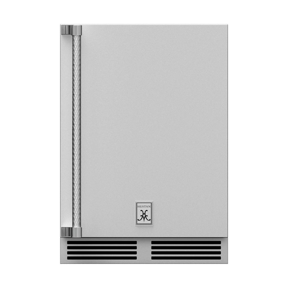 The Hestan 24-Inch 5.2 Cu. Ft. Stainless Steel Outdoor Refrigerator is a UL-listed stainless steel, outdoor-rated unit, making it perfect for your outdoor kitchen or entertaining space. Stainless steel construction provides long lasting durability while the heavy duty insulation and front-vented, forced-air refrigeration system with variable speed compressor keeps your food and drinks chilled. The adjustable, full-extension pullout shelves keeps items organized and handy and the LED lighting adds visibility. The digital temperature display and temperature control range of 33-42 degrees Fahrenheit makes it easy keep food fresh and drinks cold. The adjustable legs and zero-clearance hinging makes install easy and the door lock keeps items safe and secure.