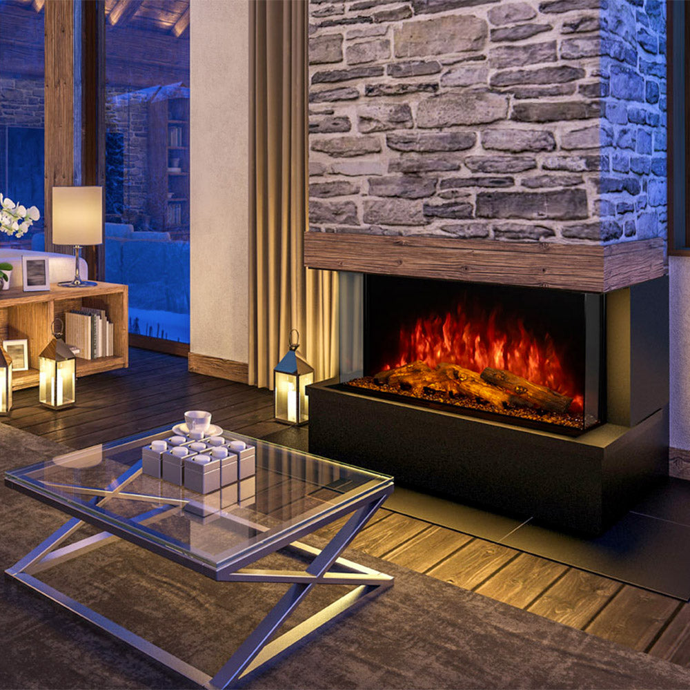 The Modern Flames 44-Inch Landscape Pro Multi-Sided Electric Fireplace offers multiple installation options that allow you to create a truly one-of-a-kind focal feature in your room. This versatile fireplace can be built into a wall as a single sided, left corner, right corner or 3-sided bay, as well as a partial 2x4" wall recess or a standard wall mount. With its 42 inch, edge-to-edge viewing area, you'll experience an expansive view of the high intensity LED-lit flame effects. Additional lighting features include a glowing ember bed and down-lighting. For added customization, all lighting effects offer a choice on the full color spectrum. The Landscape Pro Multi series includes three (3) ember bed options; clear acrylic stone, black smoke acrylic crystals and a driftwood log set.