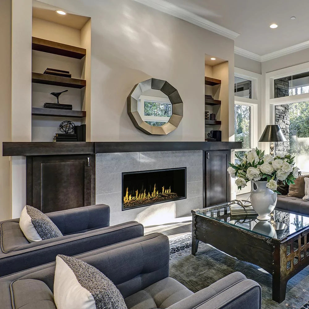 Experience the innovative Orion-Series Heliovision Linear Electric Fireplace to create the most life-like fire in an electric fireplace. The Modern Flames Orion Multi Heliovision Fireplace presents a dramatic look that’s enhanced by the versatility and features it offers. With multiple installation options including front view, left corner, right corner or bay, the Orion Multi is capable of fitting virtually any installation or setup you can imagine. This fireplace has been designed for in-wall installations, however it can be hung directly on your wall for an easier DIY project. Adding to this impressive unit is the Heliovision flame effect. Heliovision Recreates a dimensional flame effect with advanced projections, the Orion series offers three (3) different flame patterns, plus multiple colors and speed settings. The integrated crackling sound system can be activated with the press of a button to add an extra layer of depth to your fire experience.