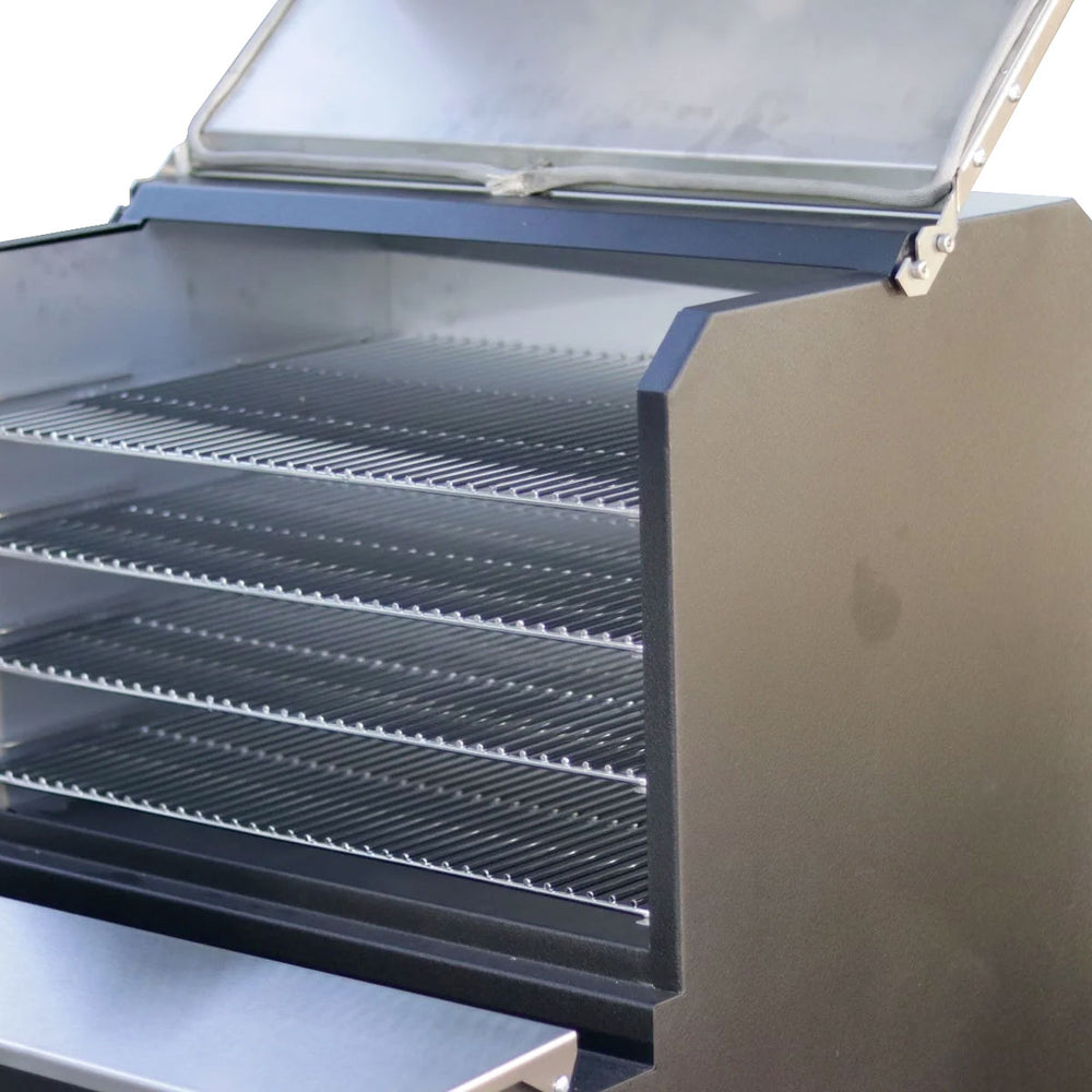 The down draft approach to smoke dispersement results in a fully-charged cooking chamber and also forces the smoke on the interior to make its way back through the meat before exiting through the stack. When cooking with pans, wood pellet smokers often lack the depth necessary to hold multiple pans. This was an important design element to Myron and drive the square design of the BARQ models. With unparalleled temperature stability and Wi-Fi connectivity, the American-Made Que-View controller not only delivers a superior cooking experience, but also allows you to monitor your cook from just about anywhere from a connected device.