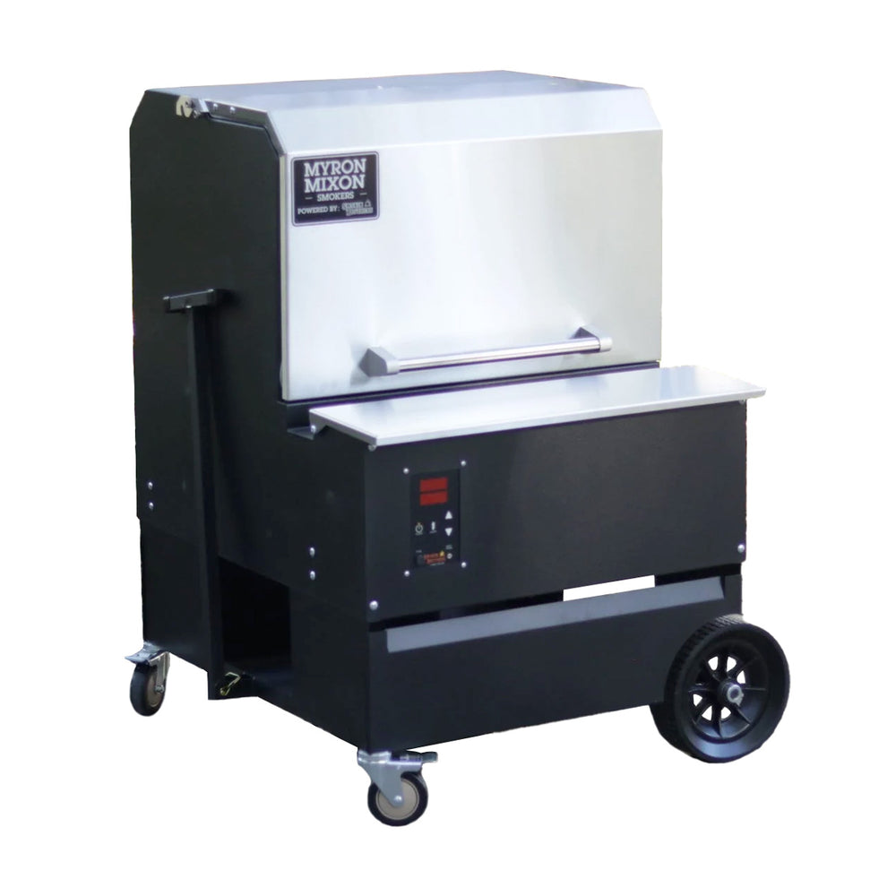 Whether for backyard family BBQs, competitions or anything in between, the BARQ 2400 Generation 3 Wood Pellet Grill from Myron Mixon & Smokin Brothers will take your cook to the next level. This Generation 3 BARQ-series grill moves the hopper to the front of the grill — unlike the industry standard of side placement — resulting in several benefits including an awesome front work surface, the ability to easily build into outdoor kitchens, and increased auger efficiency.
