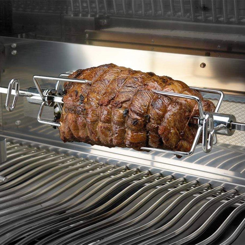 Get started roasting chickens and more, that taste like it was prepared by a five-star chef. Watch your food cook over your Napoleon grill while your mouth waters. Use the Napoleon Commercial Grade Rotisserie Kit for Large Barbecue Grills to produce restaurant quality meals right in your own back yard. The large commercial grade stainless steel hexagonal spit rod with commercial grade motor are up for any task you throw at them. The 4-prong commercial meat forks hold your food in place with easy to use thumb screws. And there is even a counterweight assembly, just in case you're cooking for an army. This easy-to-use rotisserie kit fits barbecue grill hoods up to 31 inches in width and is specifically designed to fit all PRO 500, P500 and LEX 485 series Napoleon grills. Clever, multifunctional and easy to maintain, every kitchen benefits from the addition of a Napoleon barbecue accessory.