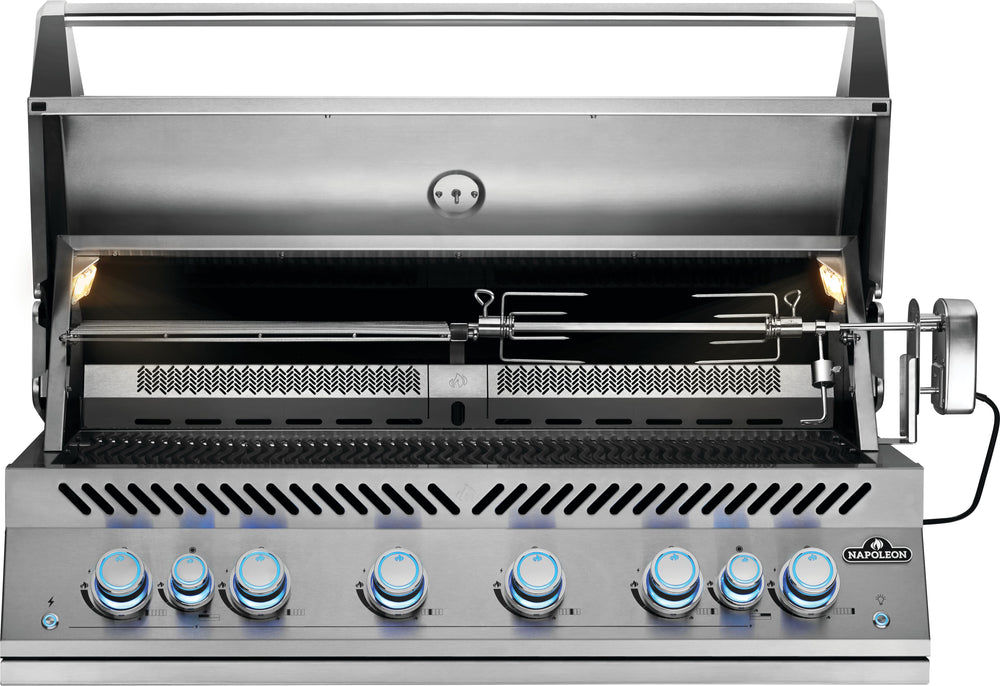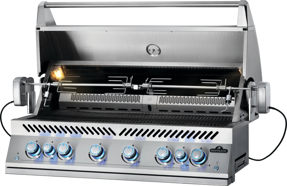 Command your barbecue with intuitive precision and limitless versatility. The trimless design of Napoleon’s Built-In 700-Series 44-Inch 6-Burner Gas Grill melds seamlessly into your outdoor kingdom, enhancing its stately allure. Mighty 9.5mm stainless steel WAVE™ grids deliver even heat and carve resplendent grill marks that captivate every taste. Interior halogen lights bathe your cooking surface in radiant brilliance, turning nighttime grilling into an enchanting triumph.