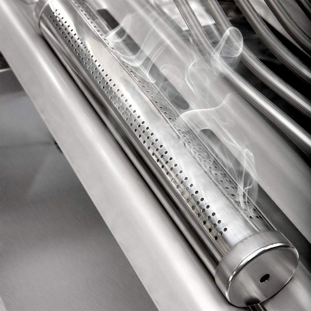 Easily turn your gas grill into a smoker with Napoleon's BBQ Smoking Starter Kit. Fill the stainless steel smoker tube half way with the chips of your choice, submerge in water, then place on the sear plates of your grill. Preheat the grill, place whatever you're smoking on the grids and close the lid and cook low and slow for perfectly smoked flavor. Sweet maple and cherry are perfect for pork and fish, while the bold hickory is great for bacon and beef, the whiskey chips have a nutty-oak flavor that finishes with a hint of aged whiskey, and is fantastic for beef, pork, poultry and spices. Mix and match, and find your flavor with Napoleon's BBQ Smoking Starter Kit. This BBQ Smoking Starter Kit comes with the stainless steel smoker tube and four (4) flavors of wood chips for variety and big smokey taste.