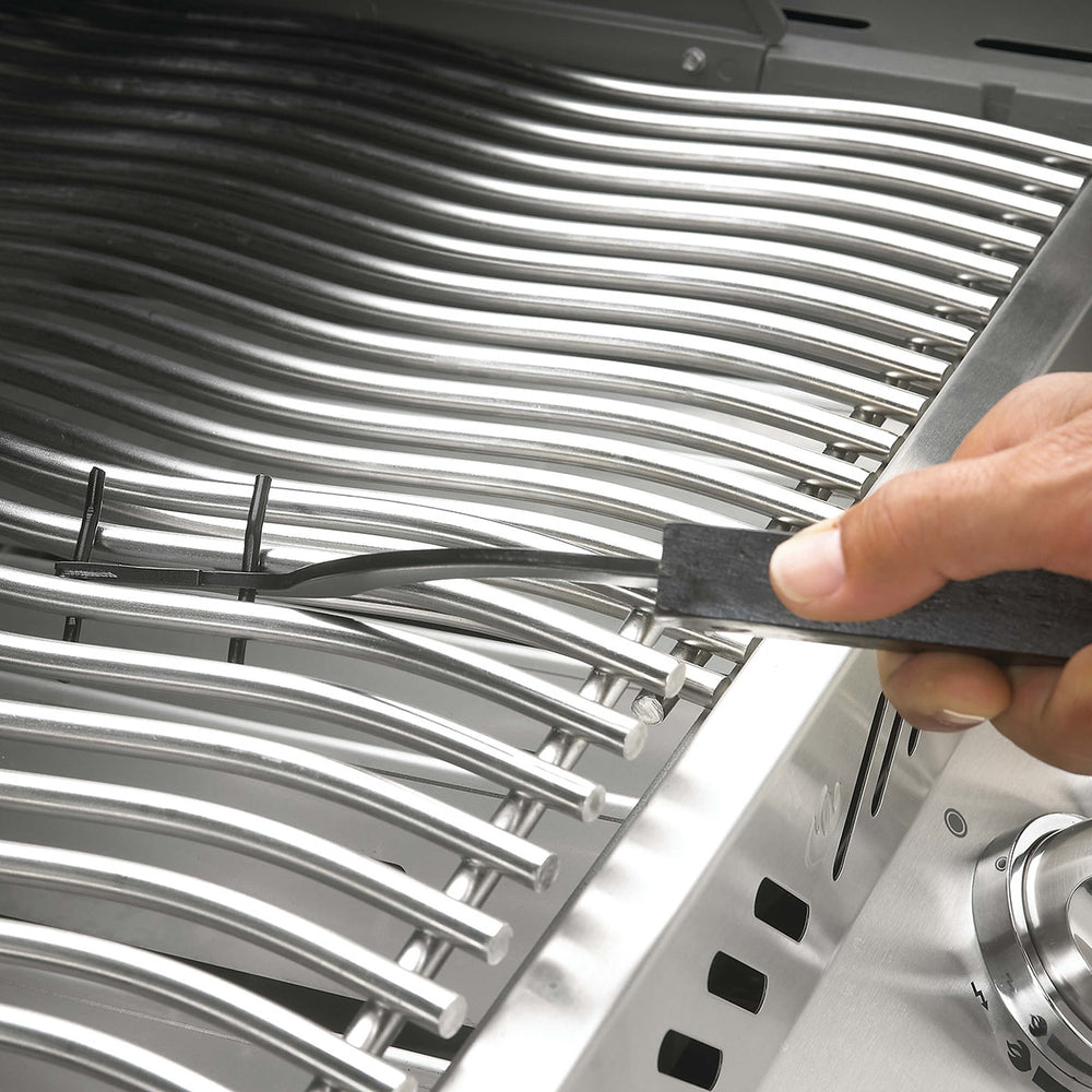 Napoleon's Elite Grid Lifter grilling maintenance accessory is a handy tool to have for your next barbecue. The Grid Lifter provides you with the leverage to easily lift the heavy cooking grids on your grill. Sometimes something that shouldn't falls through the grids. The Grid Lifter allows you to safely lift the hot and heavy cooking grids to get to the problem. You can also use this handy tool to move the sear plates on your grill. The Grid Lifter features a strong metal body that extends into the handle and is riveted in place by stainless steel rivets. The hardwood handle is heat safe and durable, providing a comfortable place for your hand. The convenient leather loop makes it easy to hang and store this little tool. Clever, multifunctional and easy to maintain, every kitchen benefits from the addition of a Napoleon barbecue accessory.