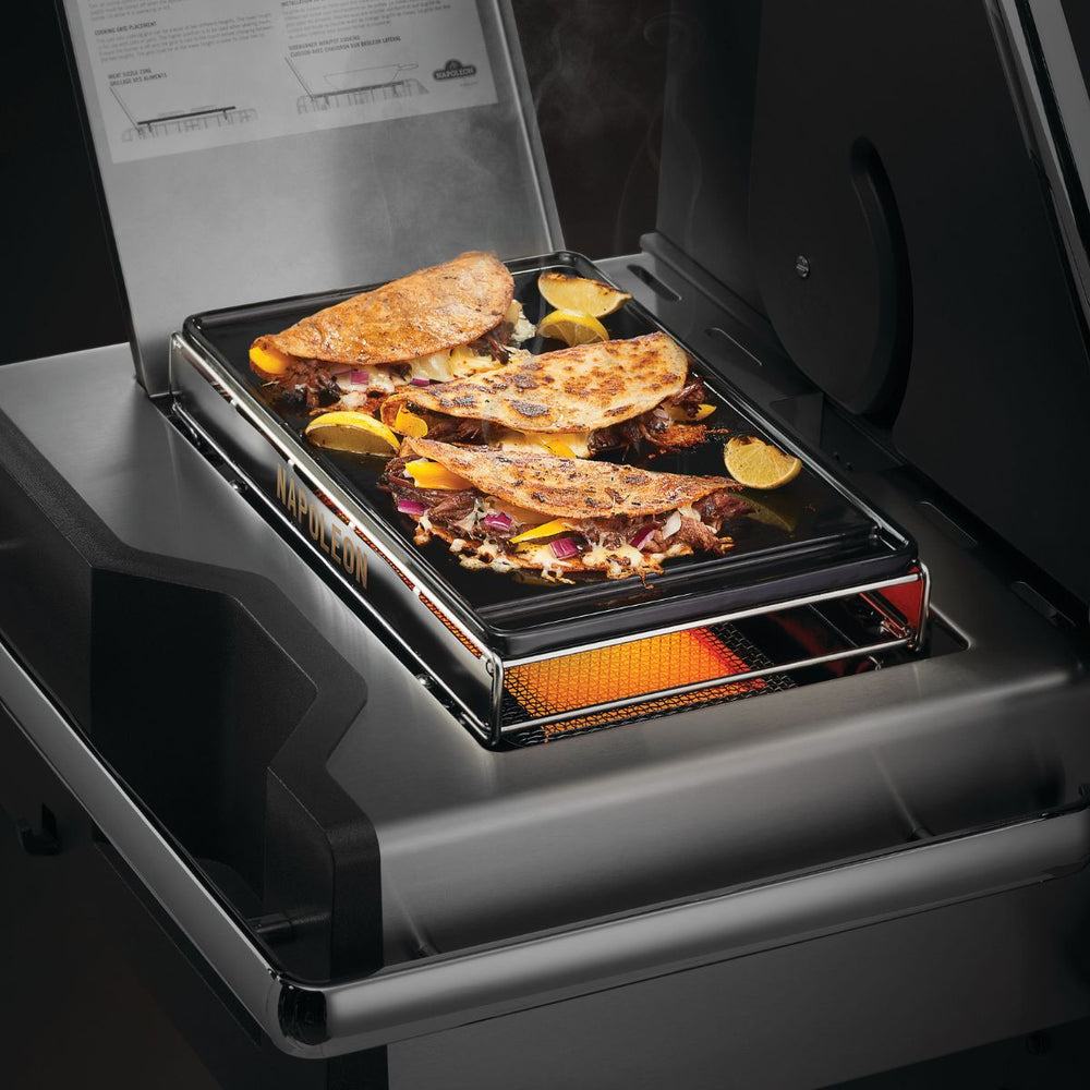 Transform your Napoleon grill’s SIZZLE ZONE with the Napoleon Porcelain-Enameled Cast Iron Griddle. Crafted from durable, porcelain-coated cast iron, this griddle turn your infrared side burner into a flat-top cooking station, perfect for searing seafood, grilling vegetables, or crafting hearty breakfasts. Compatible with Rogue SE, Prestige, Prestige PRO grills, this griddle delivers exceptional heat retention and versatility, enhancing your outdoor kitchen with al-fresco flair.