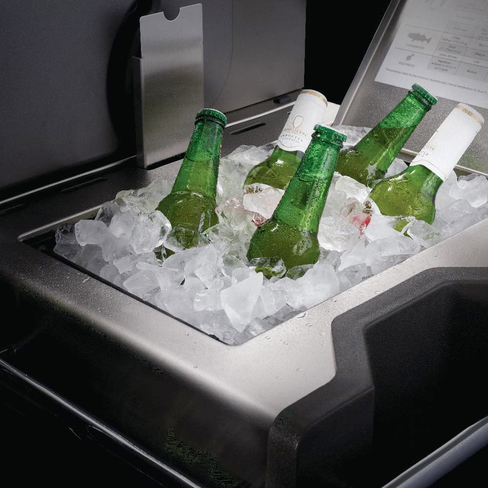 Orchestrate your barbecue with intuitive brilliance and boundless versatility. Napoleon’s Prestige PRO™ 825 6-Burner Freestanding Gas Grill boasts premium side shelves with integrated beverage holders and a marinade bucket. Reversible cast iron grids offer wok or flat-pan cooking, carving iconic sear marks with precision. Interior-lit cabinets and EASY GLIDE™ drawers elevate convenience, while a two-stage power side burner unlocks limitless culinary methods.