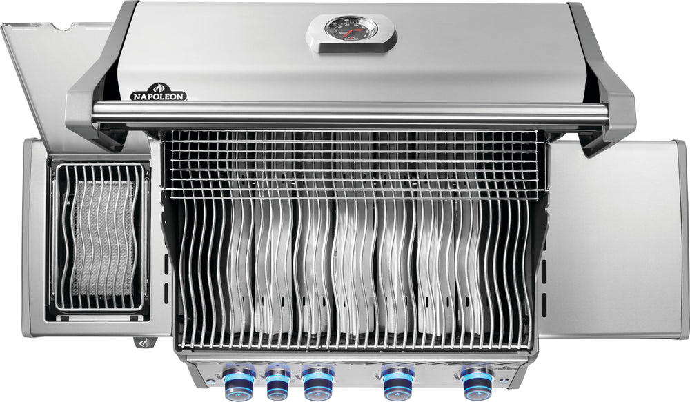 Orchestrate your barbecue with intuitive mastery and versatile flair. Napoleon Rogue® PRO-S 525 Gas Grill with Infrared Side and Rear Burners features a cast aluminum firebox for unwavering durability. Dual-level stainless steel sear plates channel even heat, safeguarding burners for enduring performance. Stout 7.5mm WAVE™ grids ensure consistent cooking, imprinting sear marks that delight every guest. An integrated bottle opener infuses practical charm into every grilling venture.