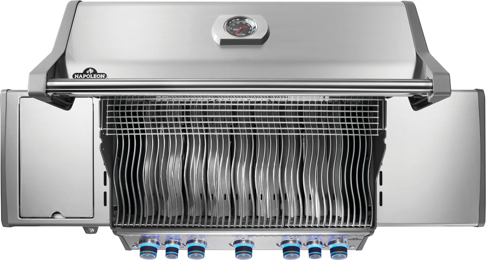 Master your barbecue with intuitive control and boundless versatility. Napoleon Rogue® PRO-S 625 Gas Grill with Infrared Side and Rear Burners boasts a cast aluminum firebox for enduring strength. Dual-level stainless steel sear plates ensure even heat, shielding burners for lasting performance. Robust 7.5mm WAVE™ grids deliver flawless cooking, imprinting sear marks that thrill every palate. An integrated bottle opener adds practical charm to every grilling session.