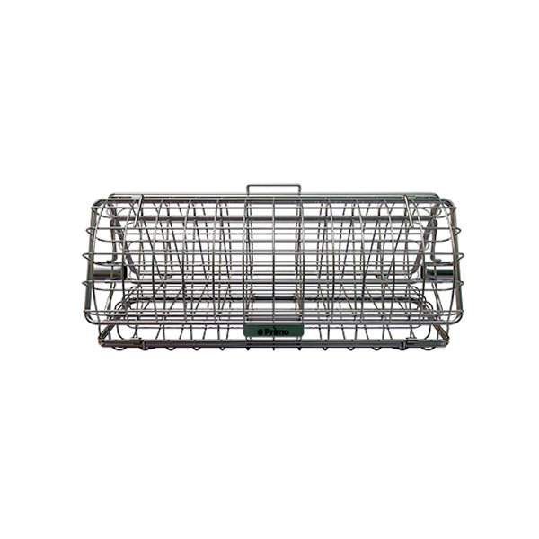 Things just taste better when they're barbecued and with the Primo Three-Sided Rotisserie Grill Basket it's easy to cook multiple cuts of fish, beef, poultry or even fill with veggies for a delicious rotisserie meal. The Rotisserie Basket's rod ports fit most rotisserie rod styles and lock in place with the thumb screws. Once you've oven-roasted your favorite cuts, the stainless steel basket cleans up easily and nests for space-saving storage.