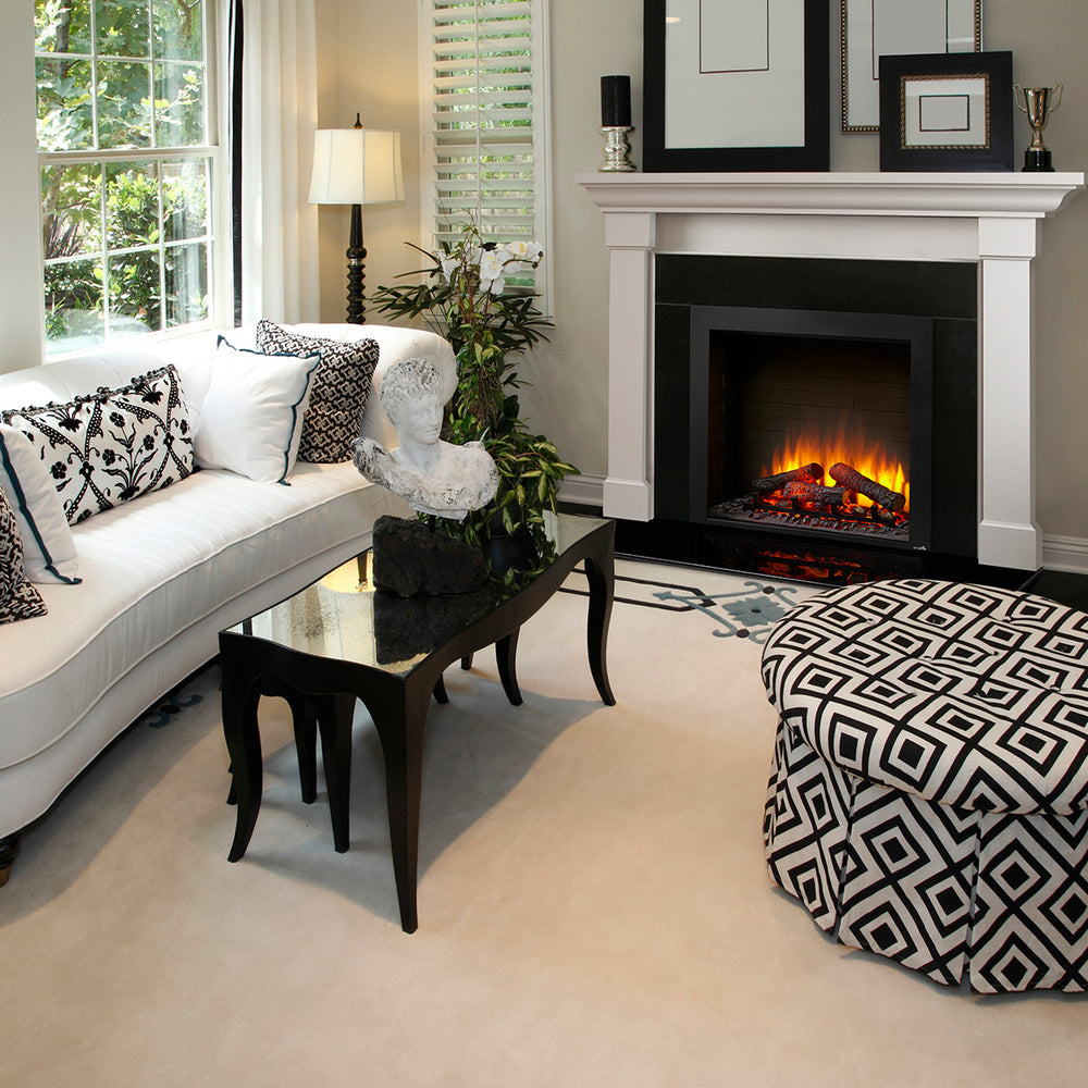 The SimpliFire Traditional Built-In Electric Fireplace delivers timeless style and efficient comfort in one elegant package. Featuring realistic LED flames, a detailed log set, and a classic brick interior, it creates the authentic look and feel of a wood-burning fireplace—without the hassle of venting or gas lines. Its compact 30-inch size makes it an ideal fit for smaller spaces, while still offering a powerful visual and heating impact.