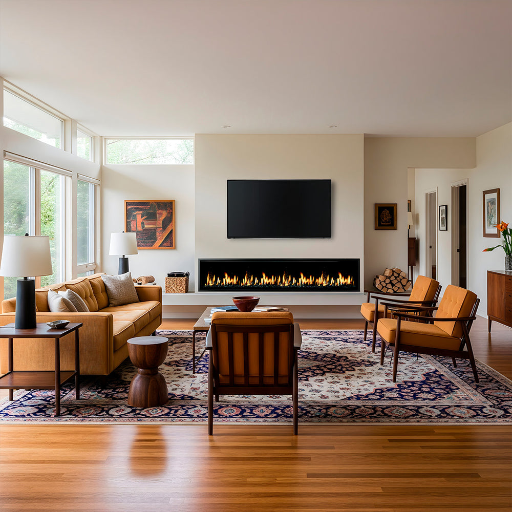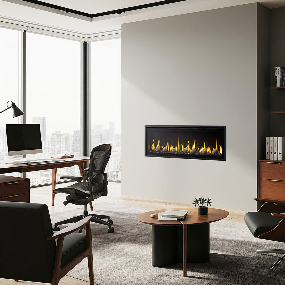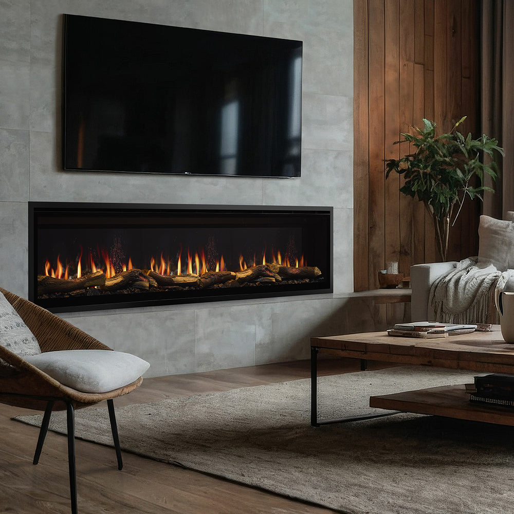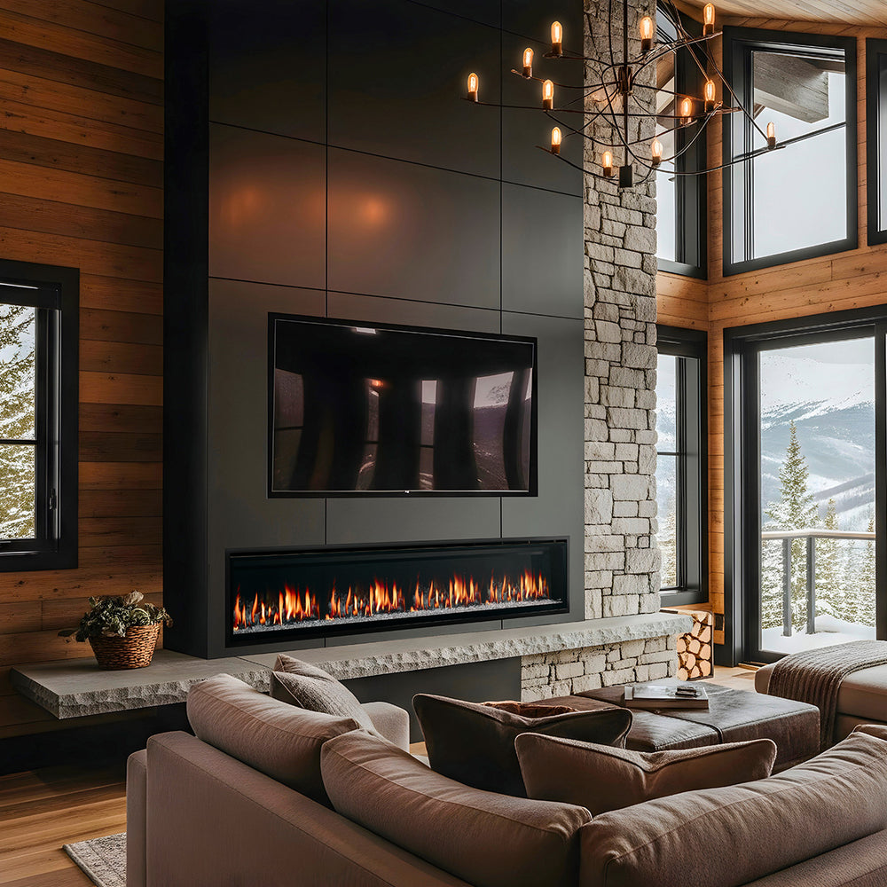 Engineered for easy installation, the Allusion Edge offers multiple mounting options—recessed, partially recessed, or wall-mounted—so you can achieve the look that best suits your space. Adjustable flame colors, brightness levels, and ember bed settings let you personalize the experience, while energy-efficient operation ensures comfort without compromise. The result is a sophisticated, low-maintenance fireplace that brings warmth and visual appeal to any room.