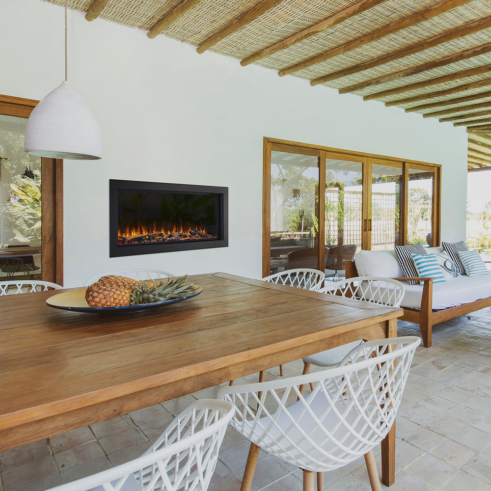 Built for durability and ease of use, the Forum is constructed with premium materials to withstand the elements while maintaining its contemporary look. With simple installation, adjustable flame settings, and energy-efficient operation, it delivers year-round comfort and visual appeal—no gas lines or venting required. Transform your outdoor space into a sophisticated sanctuary with the SimpliFire Forum Linear Fireplace.
