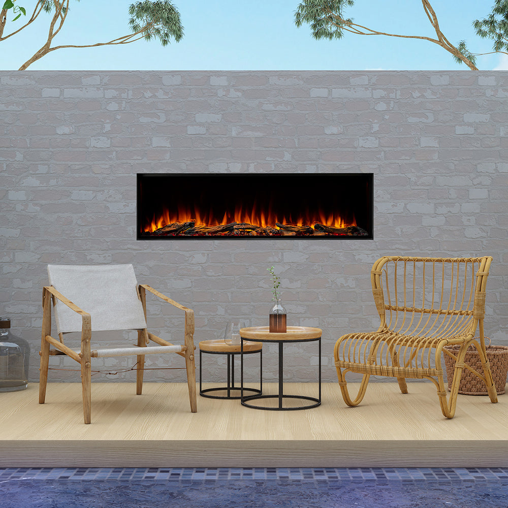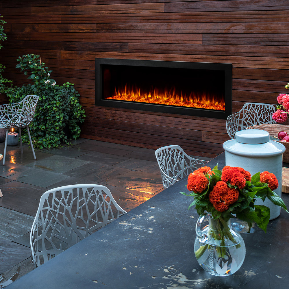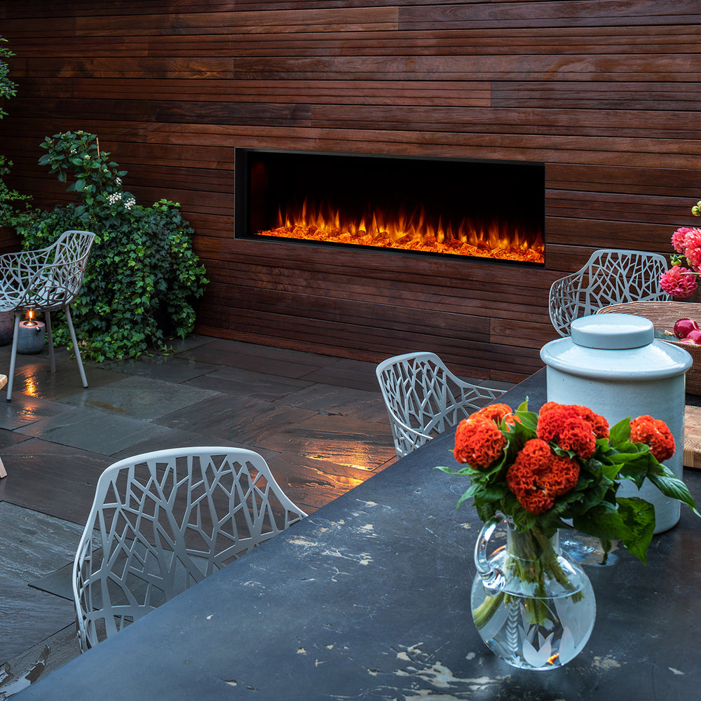 The SimpliFire Forum Linear Outdoor Electric Fireplace brings modern elegance and inviting warmth to your outdoor living space. Designed for style and performance, this weather-resistant fireplace features vivid LED flames that dance over realistic media, creating a captivating ambiance with or without heat. Its sleek, linear design complements patios, decks, and outdoor entertaining areas, turning any setting into a cozy retreat.