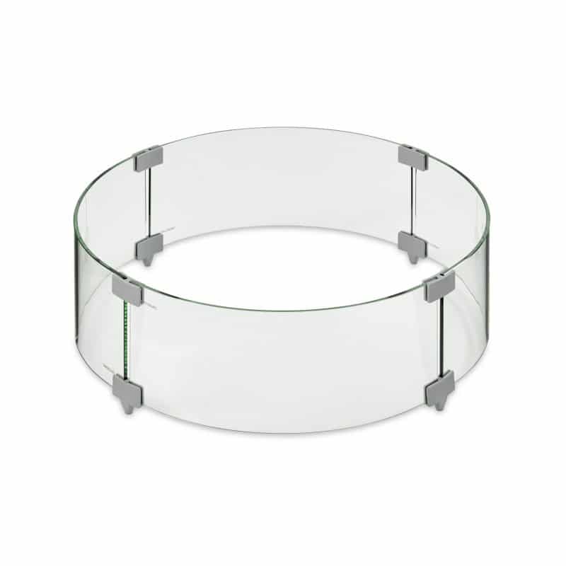 Glass Wind Guards from The Outdoor GreatRoom Company are designed to keep the wind from disturbing the beautiful flames of your fire table. Glass wind guards not only add a layer of protection between the flame, wind, little hands, pets and debris, but also look beautiful with the reflection of the dancing flame on your fire pit table. Intended for use with CF-20 burners, this kit comes with four (4) glass walls, polished aluminum clips for connecting the walls and rubber base stops. This quality access from the Outdoor GreatRoom Company is designed to fit 20" round Crystal Fire burners.