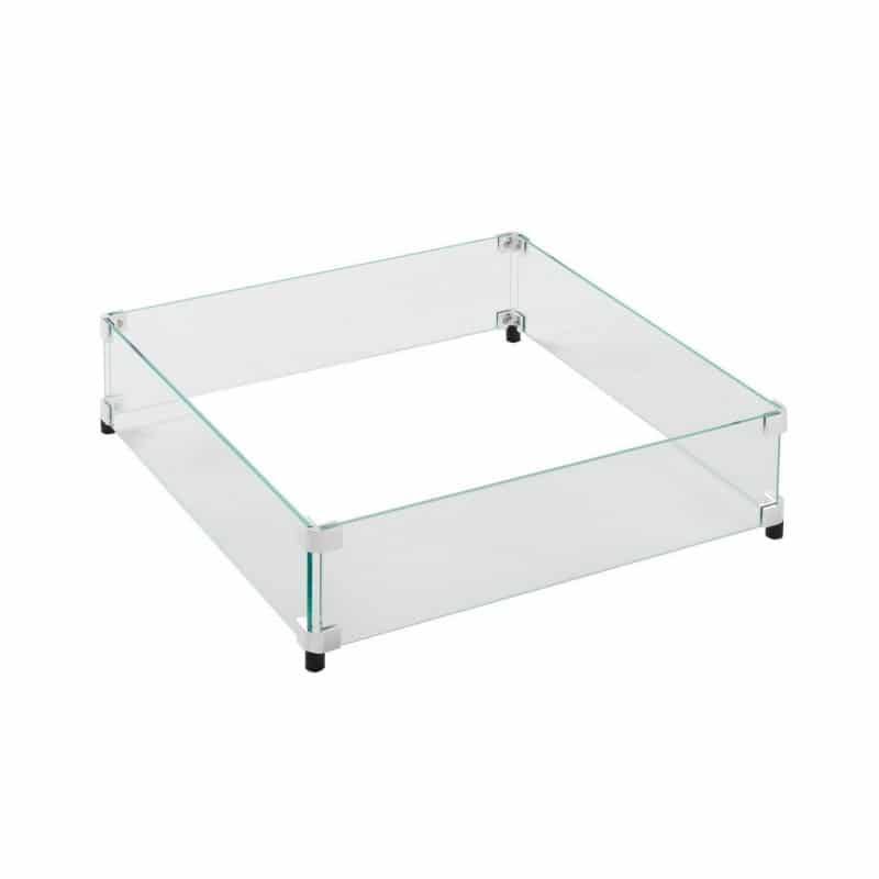 Glass Wind Guards from The Outdoor GreatRoom Company are designed to keep the wind from disturbing the beautiful flames of your fire table. Glass wind guards not only add a layer of protection between the flame, wind, little hands, pets and debris, but also look beautiful with the reflection of the dancing flame on your fire pit table. Intended for use with CF-20 burners, this kit comes with four (4) glass walls, polished aluminum clips for connecting the walls and rubber base stops. This quality access from the Outdoor GreatRoom Company is designed to fit 24x24" Crystal Fire burners.