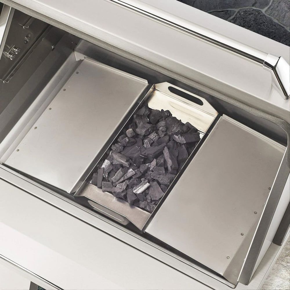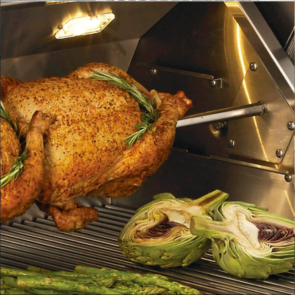 This pellet grill has a 16-gauge stainless steel vaporizer plate that promotes natural convection and turns drippings into flavorful smoky vapors. Additionally, you can provide direct heat cooking to beautifully sear your steaks, chops or vegetables with the radiant heat briquette tray or the lump charcoal tray. Easily access the front-load, 13-pound pellet hopper to check the pellet level and refill your natural wood pellets when necessary. The grill has two (2) independent drip tray drawers with removable and disposable pans for easy clean up and additional storage for accessories. Integrated hanger hooks allow you to suspend your meat over the grill surface for even cooking and smoke flavor. The heavy-duty rotisserie system has a fully-integrated motor with 100-pound turning capacity and a chain-driven design providing consistent and uniform rotation of the rotisserie rod. Whether you want to smoke, bake, grill or sear, you will receive excellent results with this amazingly versatile Pellet Grill from Twin Eagles.