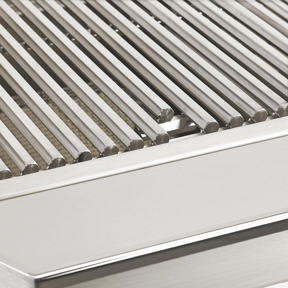 The concealed infrared rotisserie burners sit behind a black glass pane, allowing for a wider range of cooking temperatures and more evenly distributed heat across larger foods. Eagle One Series grills also have 1/2-inch diameter hexagonal cooking grate rods for improved heat retention and extra food-to-surface contact. All metal components are made using premium-grade stainless steel with seamless heli-arc welded construction for maximum strength and durability. The double-lined hood with hidden heavy-duty lift extension springs provides better durability, more insulation, and reduces the weight to make it easier for you to open and close.