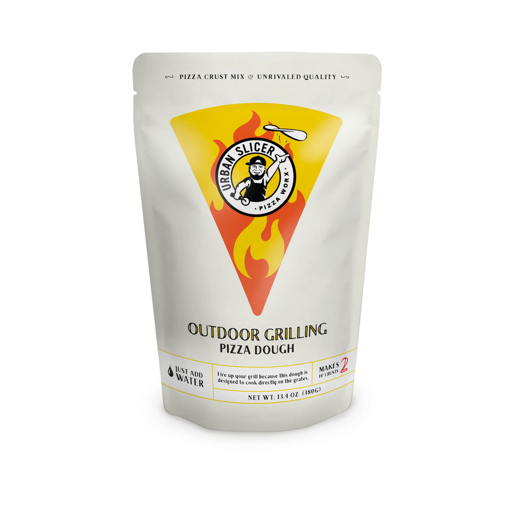 Make your own quality pizza at home with the Urban Slicer Outdoor Grilling Pizza Dough. This premixed dough is ready to go, just add water, knead the dough for 10 minutes, let the dough rise and you'll be on your way towards your pizza journey. Urban Slicer's Outdoor Grilling Pizza Dough is designed to cook directly on the grill grates at a temperature range of 450-550 Fahrenheit, making it ready to eat in under 8 minutes. That's faster than pizza delivery! All you need to start your Outdoor Grilling pizza journey is this pizza dough mix, tomato sauce, mozzarella cheese and your favorite pizza toppings. Fire up your grill or smoker and prepare to take a seat on the thrown as the king or queen of pizza in your house.